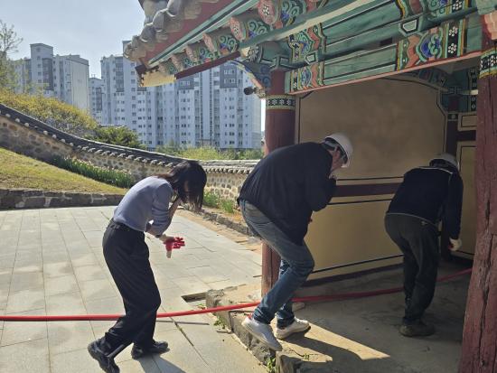 À̹ø ÇÕµ¿ÈÆ·ÃÀº ´çÁø½Ã ¹× ´çÁøÇâ±³ °ü°èÀÚ, ¹®ÈÀ¯»ê ¼Ò¹æ½Ã¼³ ¾ÈÀü°ü¸® Àü¹®¾÷ü, Ãæ³² ¼ºÏ±Ç¿ª ¹®ÈÀ¯»êµ¹º½¼¾ÅÍ µî ¾à 15¸íÀÌ Âü¿©ÇÑ °¡¿îµ¥, ÈÀç µî Àç³ »óȲÀ» °¡Á¤ÇØ ½ÇÁ¦¿Í À¯»çÇÑ È¯°æ¿¡¼ ÁøÇàÇß´Ù.